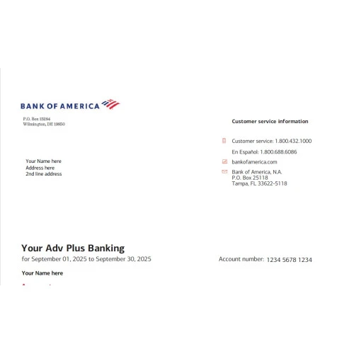 Bank of America Pesonal Bank Statement Template – Sept 2025.